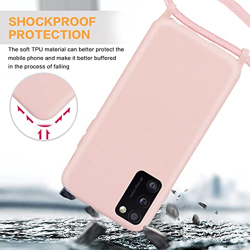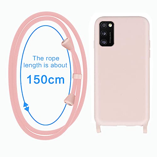 GoodcAcy Cover con Collana per Samsung Galaxy A41,Custodia Silicone Liquido con Cordino per Galaxy A41,Custodia con Regolabile Collana Case con Laccio Tracolla per Samsung Galaxy A41,Pink