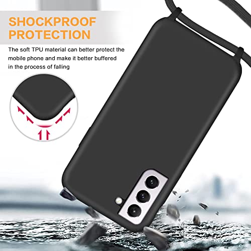 GoodcAcy Cover con Collana per Samsung Galaxy S21 FE,Custodia Silicone Liquido con Cordino per Galaxy S21 FE,Custodia con Regolabile Collana Case con Laccio Tracolla per Samsung Galaxy S21 FE,Nero