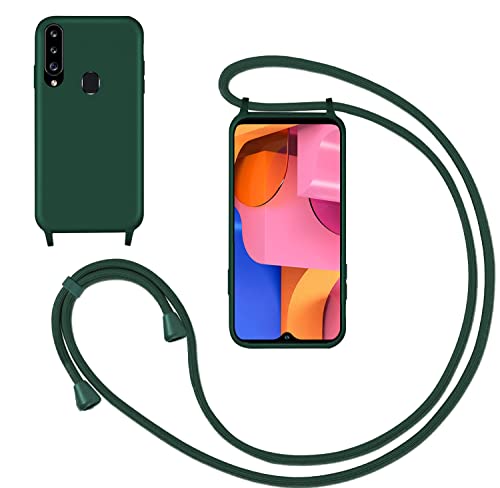 GoodcAcy Cover con Collana per Samsung Galaxy A20S,Custodia Silicone Liquido con Cordino per Galaxy A20S,Custodia con Regolabile Collana Case con Laccio Tracolla per Samsung Galaxy A20S,Verde