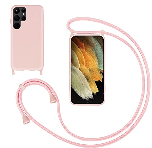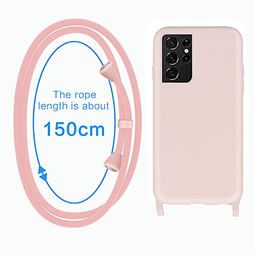 GoodcAcy Cover con Collana per Samsung Galaxy S21 Ultra,Custodia Silicone Liquido con Cordino Custodia con Regolabile Collana Case con Laccio Tracolla per Samsung Galaxy S21 Ultra,Pink