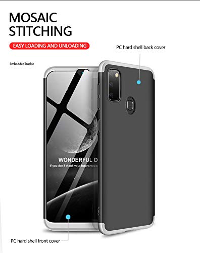 GoodcAcy Cover Samsung Galaxy M30S,360 Gradi della Copertura Completa 3 in 1 Cover con Protezione dello Schermo di Vetro Temperato Protettiva Cover Case Skin Bumper per Galaxy M30S Argento Nero