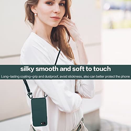 GoodcAcy Custodia Compatibile con iPhone SE 2020/iPhone SE 2022, Custodia da Collo per Smartphone,Cover con Cordoncino da Indossare Cordino Laccio Morbido Silicone Necklace Bumper Case - Verde Scuro