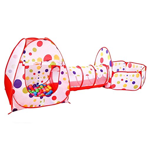 Goodlucky365 Giochi per bambini tenda Tunnel tenda Cubby-Tube canadese giochi 3 pezzi Pop-up Interni Esterni Giochi da casa giocattolo capanna facile pieghevole Oceano Palla Piscina con Cerchio di pallacanestro