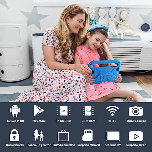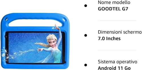GOODTEL Tablet per Bambini 7 Pollici FHD Android 11, 32 GB ROM, WiFi 6, Bluetooth, GPS, Educazione + Giochi, Google Play, Doppia Fotocamera, Controllo Parentale, Slot MicroSD, con Custodia (Blu)