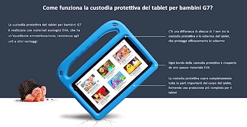 【Custodia Protettiva Portatile per Bambini】La custodia protettiva G7 è resistente e leggera, realizzato in materiale EVA, con un supporto pieghevole per supportare il tuo tablet. La custodia protettiva G7 ha anche una maniglia portatile, che può spostare il tablet in modo più sicuro e conveniente. Il design 3D aiuta a fornire una presa e una protezione confortevoli, alleviando efficacement