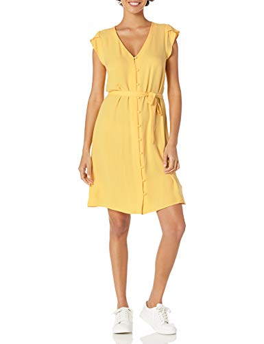 Goodthreads Abito con Cintura in Vita a Maniche Corte a Tulipano in Morbido Twill Donna, Giallo, M