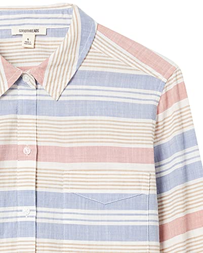 Goodthreads Camicia Boyfriend a Maniche Lunghe in Cotone Slavata Donna, Blu/Rosa, Righe, XXL