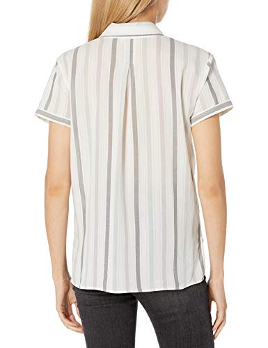 Goodthreads Camicia Camp in Dobby di Cotone Leggero Donna, Bianco/Verde Menta/Grigio, Righe, L