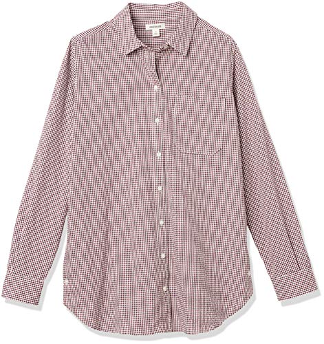 Goodthreads Camicia Oversize in Seersucker a Maniche Lunghe con Bottoni Laterali Donna, Bordeaux/Bianco, Percalle, S