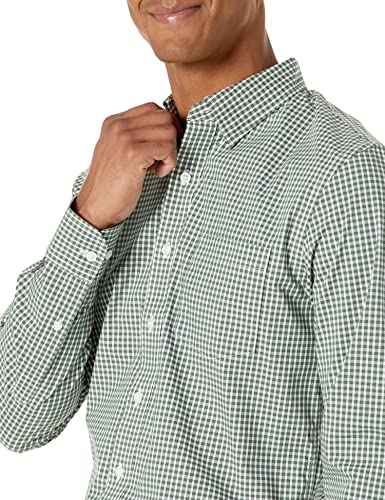 Goodthreads Camicia in Popeline Elasticizzato Comfort Antipieghe a Maniche Lunghe vestibilità Standard Facile da Lavare Uomo, Verde, A Quadretti, S
