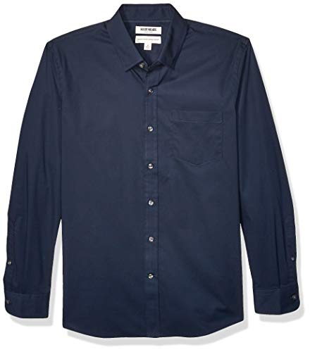 Goodthreads Camicia in Popeline Elasticizzato Comfort Antipieghe a Maniche Lunghe vestibilità Standard Facile da Lavare Uomo, Blu Marino, XS
