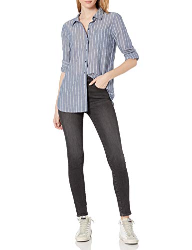 Goodthreads Camicia a Tunica in Cotone con Piccoli Disegni a Maniche Lunghe con Bottoni sul Davanti Donna, Indaco/Bianco, Righe Doppie, S