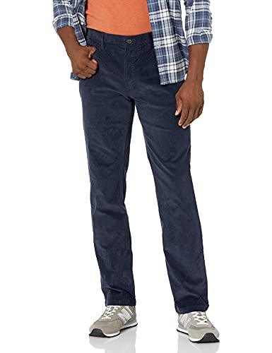 Goodthreads Pantaloni in Velluto a Coste Elasticizzati Comodi con 5 Tasche e Taglio Dritto Uomo, Blu Marino, 34W / 32L