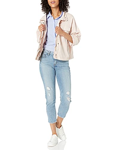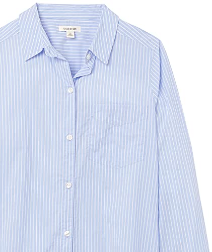 Goodthreads Tunica Boyfriend a Maniche Lunghe in Cotone Leggera Donna, Blu/Bianco, Righe Dobby, XS