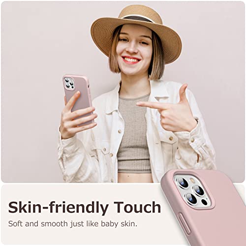 GOODVISH 3 in 1 Cover iPhone 12 Pro Silicone, con 2 Pezzi di Pellicola Protettiva, Custodia per Cellulare 6,1'' con Morbida Microfibra, Antiurto, Rosa Sabbia