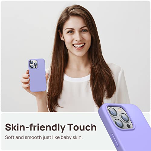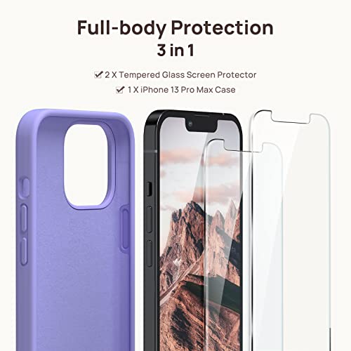 GOODVISH 3 in 1 Cover in Silicone per iPhone 13 Pro Max 6,7", con 2 Pezzi di Pellicola Protettiva, Silicone Liquido Custodia per Cellulare con Morbida Microfibra Antiurto, Viola