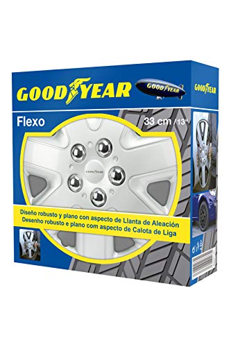 Goodyear GOD9034 1 Set di 4 coprimozzi argentati di 13” con Tecnologia Flexo e Anello di bloccaggio Regolabile, Argento