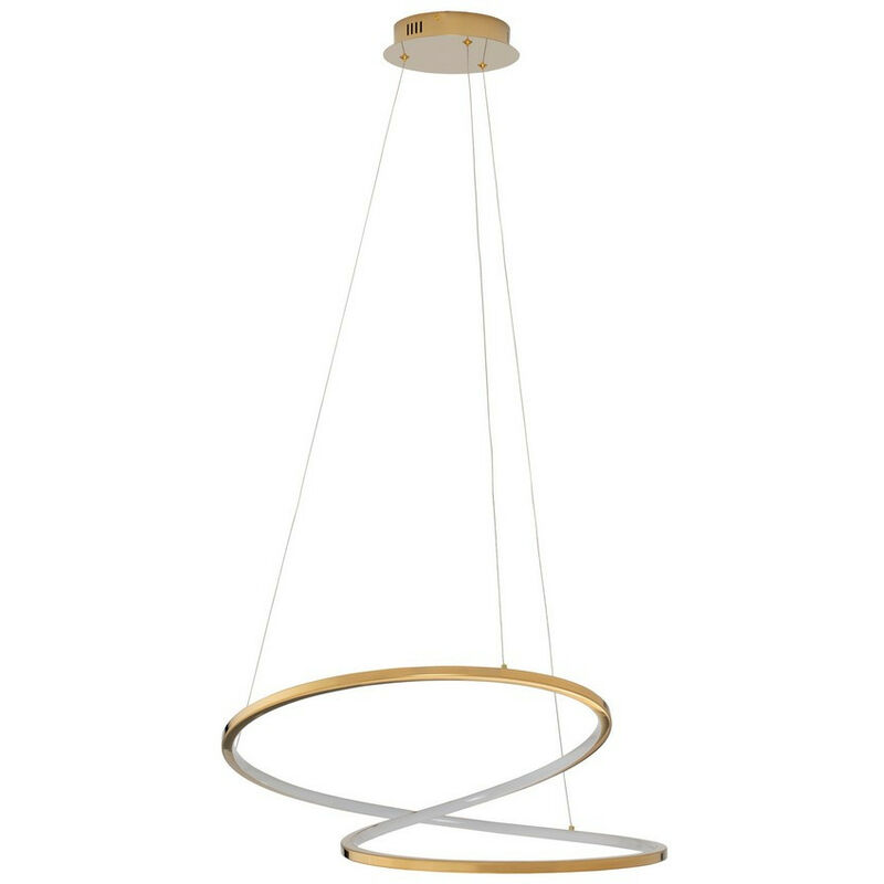 Merano Goodyear Plafoniera a sospensione a LED integrata Placcatura in oro Acciaio inossidabile LED 40W 2400Lm 3000K | Finitura: placcatura in oro | Materiale: alluminio, silicone | Classificazione IP: IP20 | Altezza minima: 30 cm | Altezza massima: 120 cm | Diametro: 60 cm | Tipo di lampada: LED integrato | Lampadina inclusa: Sì | Dimmerabile: Sì | Kelvin: 3000 K | Lumen: 2400lm | Peso: 3,5 kg | Potenza (massima): 40W