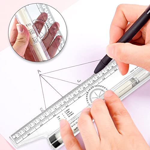 ➤ Design unico: ogni centimetro sul righello ha un foro rotondo per una facile marcatura e il rullo ha formule diverse per aiutarti a completare rapidamente i tuoi calcoli durante l'uso. La cosa più importante è che il nostro righello rotante sia realizzato in materiale trasparente, che ti permette di disegnare senza trascurare alcune forme o testi importanti.