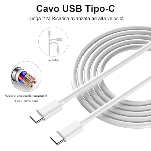 Cavo di ricarica da 2 m: Il kit di ricarica viene fornito con un cavo USB Type-C-C da 2M (supporta una corrente di ricarica fino a 3A e un trasferimento dati di 480Mbps), che può essere utilizzato direttamente con smartphone, tablet, cuffie Bluetooth, altoparlanti e molti altri dispositivi, rendendolo prezioso per la casa, l'ufficio e i viaggi.