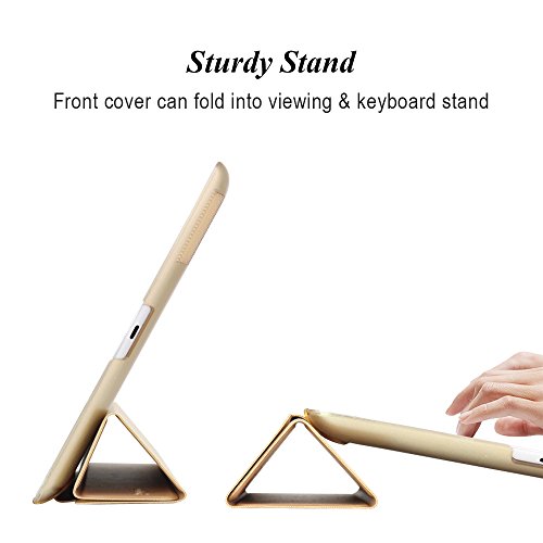 Goojodoq, custodia aderente per iPad 2/3/4, in similpelle, pieghevole, con guscio posteriore semitrasparente in policarbonato smerigliato, funzioni on/standby automatiche oro Gold For iPad 2/3/4