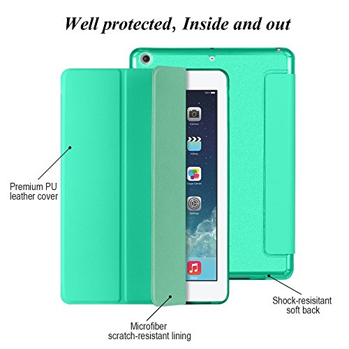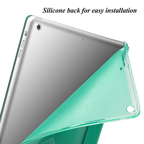 Goojodoq, custodia intelligente per iPad Air 1, con funzione auto sleep e auto wake, leggera, ultrasottile, in similpelle, silicone e morbido poliuretano termoplastico, retro satinato e traslucido verde green For iPad air 1