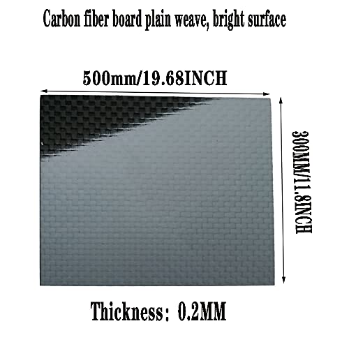 GOONSDS Scheda del Pannello della Piastra di Fibra del Carbonio del 100% 3K (Superficie Lucida) per L'elicottero E L'aeroplano RC 300Mmx500mm,Thickness:0.2mm