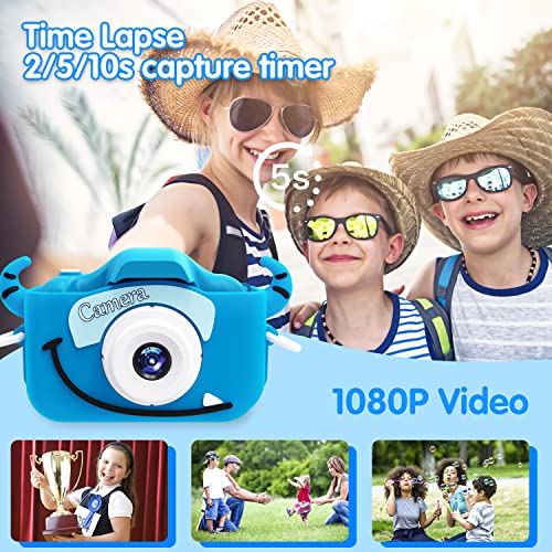 Goopow Fotocamera Bambini,Mini Ricaricabile Fotocamera Digitale per Bambini Videocamera Regali per Ragazze Ragazzi da 3-9 Anni,8MP Video HD Schermo da 2 Pollici (Scheda 32 GB Inclusa) (NJ-Blu)