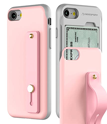 GOOSPERY SlideTok Case Compatible with iPhone SE 2020/8 / 7, Card Holder Phone Finger Grip Band Loop Stretch Kickstand 2 Card Storage Dual Layer Protective Bumper Wallet Cover (Pink) IP8-SKYTOK-PK