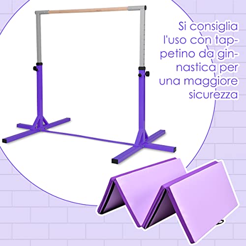 GOPLUS Barra Orizzontale Ginnastica per Bambini, Attrezzatura per l'Allenamento, Ginnastica Barra con Altezza Regolabile, 200x121x(94-150) cm (Viola)