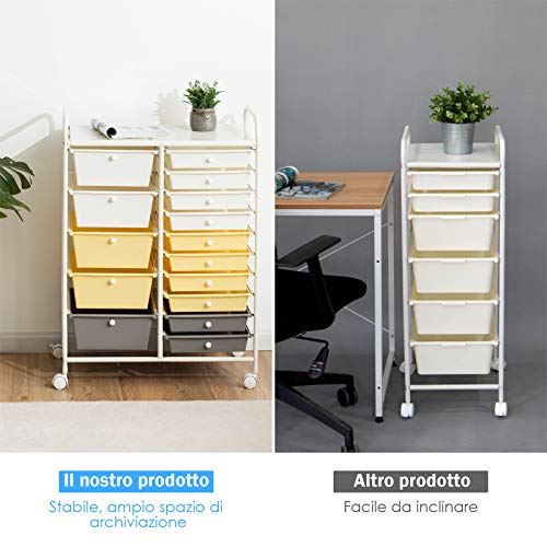 GOPLUS Carrello con 15 Cassetti da Stoccaggio,Contenitore Multiuso con Ruote, Ideale per Uffici, Parrucchieri, Cucina, Bagno (Giallo)