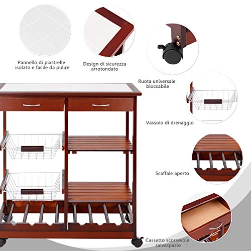 Materiali di alta qualità: Questo carrello da cucina realizzato in legno di pino, è robusto e durevole,ha una lunga durata, la superficie del tavolo è composto da 18 piastrelle, facile da pulire.