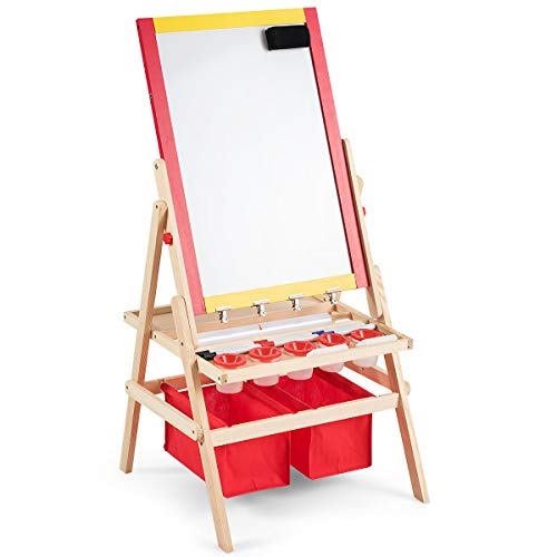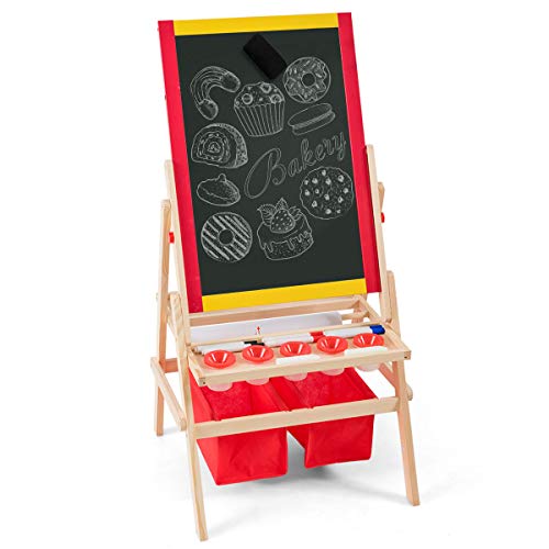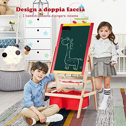 GOPLUS Cavalletto lavagna bambini, con Accessori Completi, 3 in 1, Lavagna a Doppia Faccia di Legno di Pino,106,5x79x52,5 cm