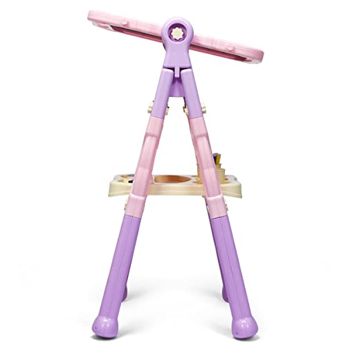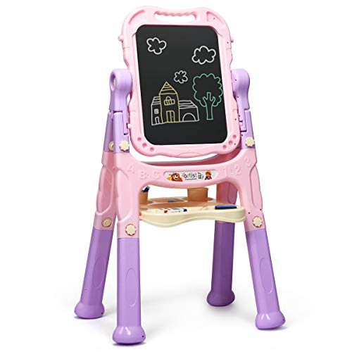 Goplus Lavagna Magnetica e Classica per Bambini, Design 2 in 1, Telaio in Altezza Regolabile, Struttura Triangolare Stabile, con Accessori, Adatto per Bambini Con Più di 3 Anni, 61x45x109 cm (Rosa)