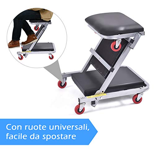 GOPLUS Lettino Pieghevole sotto Auto, Carrello con 6 Ruote, Sgabello da Officina Nero 102x45,5x15 cm