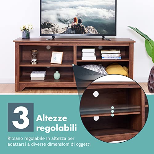 GOPLUS Mobile Porta TV, 147x40,5x61 cm, Scomparti Ripiano Regolabile, Ampio Spazio di Archiviazione, in Legno Resistente, Moderno per Soggiorno,147x40,5x61 cm, Marrone