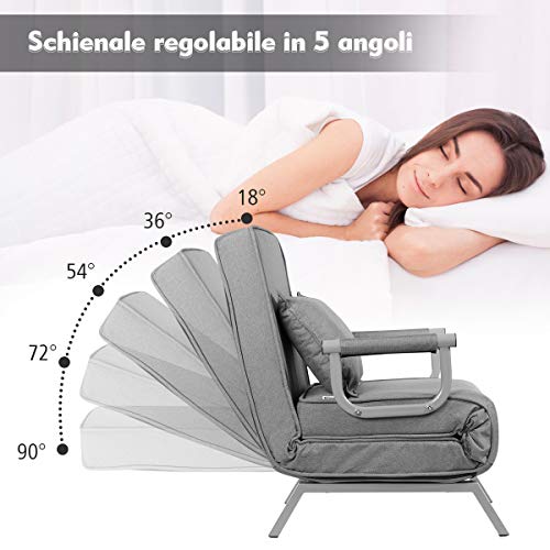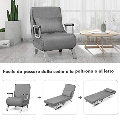 GOPLUS Poltrona Letto Chaise Longue Divano di Cotone e Metallo Multifunzione 83x59x78,5 cm (GRIGIO)