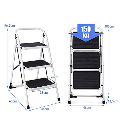 GOPLUS Scaletta Pieghevole in Ferro con 3 Gradini Antiscivolo, Scala Portatile e Leggera, Scaletta Domestica con Grande Portata di 150 kg, Perfetta per Casa e Ufficio, 63 x 46 x 96,5 cm