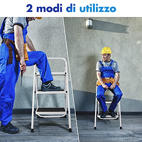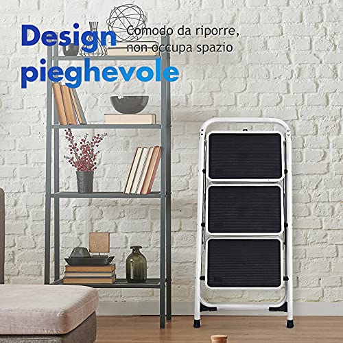 Facile da trasportare e conservare: Grazie al design pieghevole, dopo l'uso, la nostra scala con 3 gradini può essere piegata per trasportarla in modo semplice. Inoltre, la sua dimensione piegata di 11,5 x 46 x 106 cm è poco ingombrante così è perfetta da conservare in ogni angolo della casa.