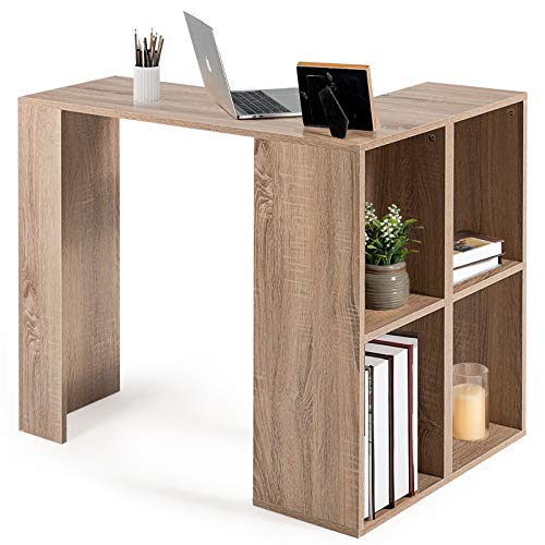 GOPLUS Scrivania 2 in 1 con scaffale per Ufficio e Studio, Scrivania Porta PC con Ripiani, Scrivania a Forma di L e Salvaspazio, di Legno, 90x75x60 cm