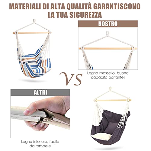 GOPLUS Sedia Amaca Imbottita in Cotone, Poltrona Sospesa con Bastone in Legno Massello, Poltrona Amaca da Giardino con capacità 120 kg, Perfetta per Salotto, Terrazzino, Soggiorno e Balcone (Beige)