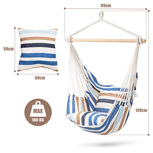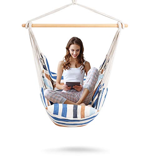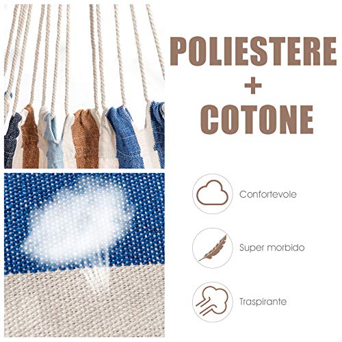 Qualità soddisfacente: Utilizzando il poliestere e il cotone di alta qualità, la nostra amaca può durare a lungo senza rompersi sia all'interno che all'esterno. Inoltre, la superficie è atossica e innocua così stare direttamente a contatto con la pelle degli utenti ed è perfetta da usare anche per i bambini.