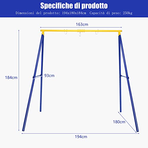 GOPLUS Supporto per Altalena con Struttura Metallica, Altezza Regolabile, da Giardino e Cortile, Carico di 200kg, 196x180x185 cm