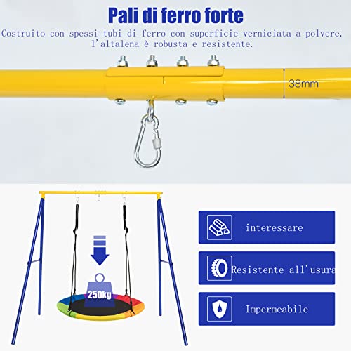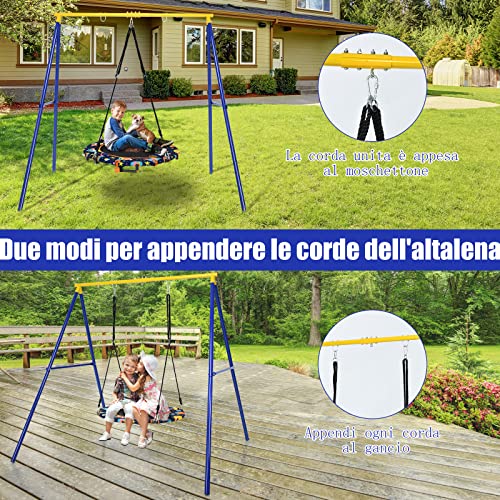Durevole e stabile: Il design a forma di A garantisce una maggiore sicurezza e stabilità. Ci sono i paletti nella parte inferiore per prevenire il ribaltamento. Con una grande stabilità, il telaio d'altalena può reggere fino a 150 kg ed è adatto alle diverse età.