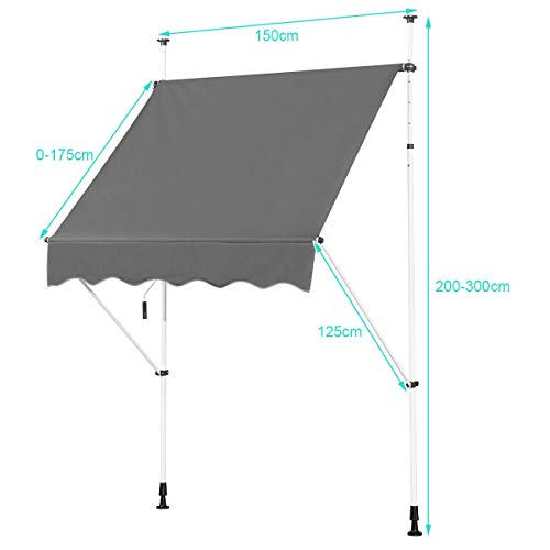 GOPLUS Tenda da Sole,Parasole con Altezza Regolabile, Tenda da Sole per Giardino e Balcone, con Pali di Supporto, Struttura Metallica (1,5x1,2 M, Grigio)