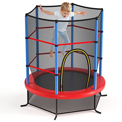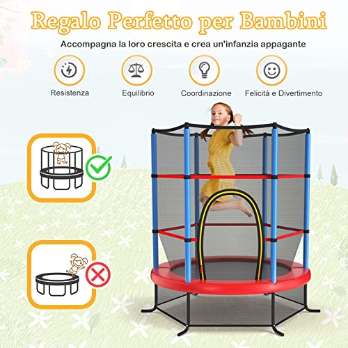 GOPLUS Trampolino Elastico Bambini, Tappeto Elastico Esterno/Interno, Rete di Sicurzza, Porta con Cerniera, Carico di 136kg, 165x165cm, Verde/Rosso/Blu/Colorato