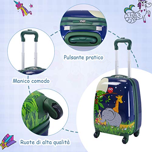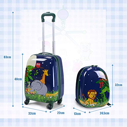 GOPLUS 2 in 1 Valigetta bimbo Trolley bambino Piccolo Bagaglio di Viaggio Carino Valigetta+Zaino Verde