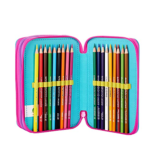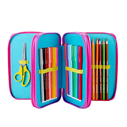 Contenuto: 18 matite colorate, 18 pennarelli, 1 penna blu Pilot Frixion, 1 penna a sfera rossa, 1 matita, 1 gomma, 1 righello, 1 temperino, 1 paio di forbici