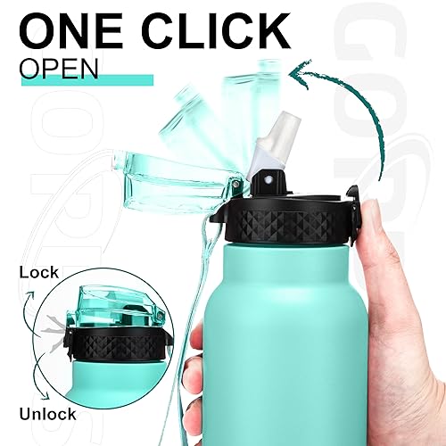 GOPPUS 750ml/24oz Borraccia Inossidabile con Cannuccia Borraccia per Acqua Termica Calda Borracce in Acciaio a Doppia Parete Borracce Isolate Borraccia per Acqua Fredda a Tenuta Stagna per Adulti
