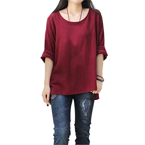 Gordon Q - Camicetta da donna casual a maniche lunghe, collo rotondo, in cotone e lino